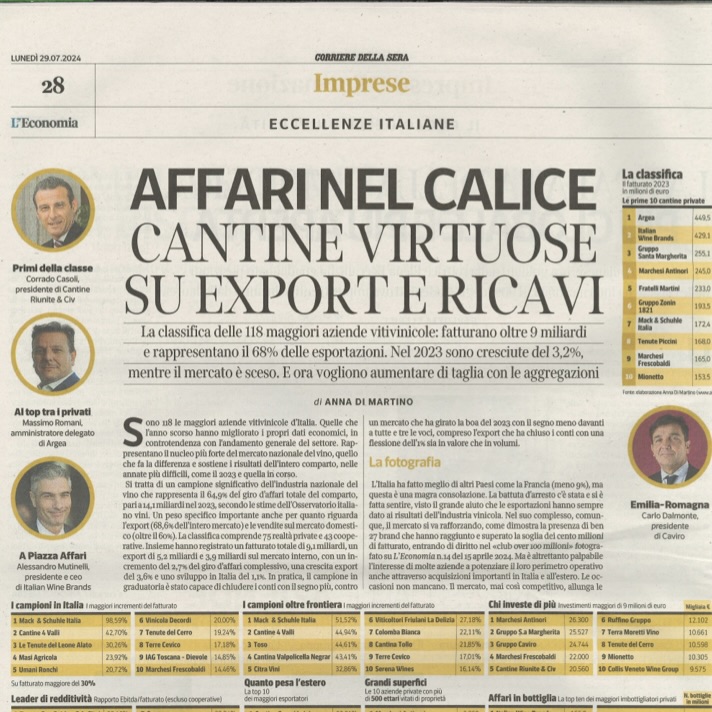 Sul Corriere della Sera, le 118 cantine italiane più virtuose