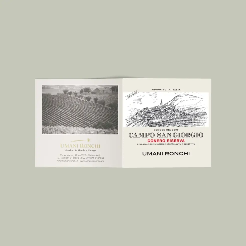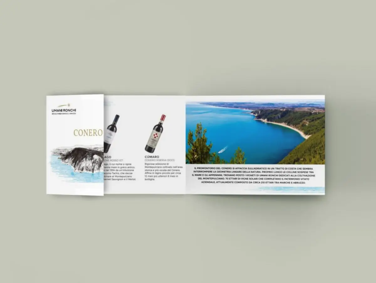 Il leaflet Umani Ronchi raccoglie l’intera collezione dei vini dell’azienda, rappresentati attraverso le due regioni di provenienza: Marche e Abruzzo.