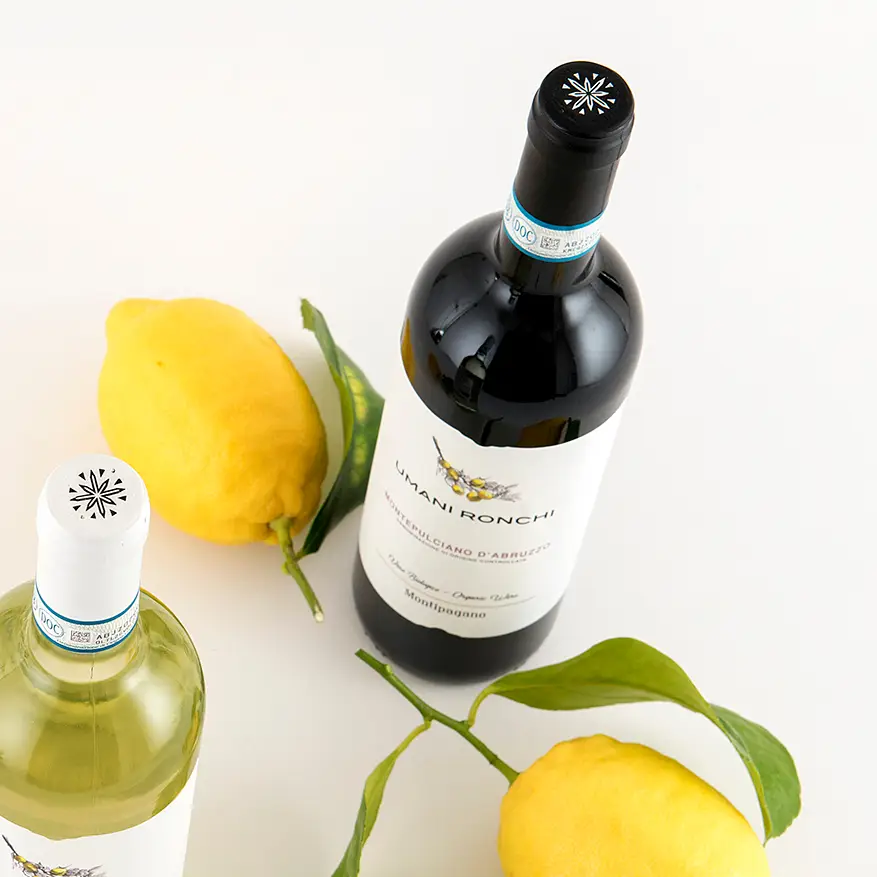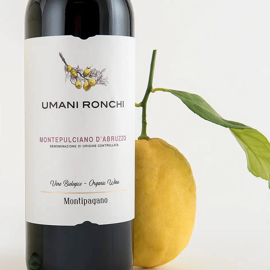Our version wishes to underline one of the main qualities of these grapes: the ability to obtain extremely pleasant wines, with an authentic personality. Its pleasntness derives from the fruit notes and the clean finish, the excellent balance among tannins, structure, and acidity; its authenticy, instead, appears through the great ability of these grapes to always show the best quality and recognisability even in the most difficult vintanges. Montipagano is the Montepulciano d’Abruzzo DOC organic Umani Ronchi