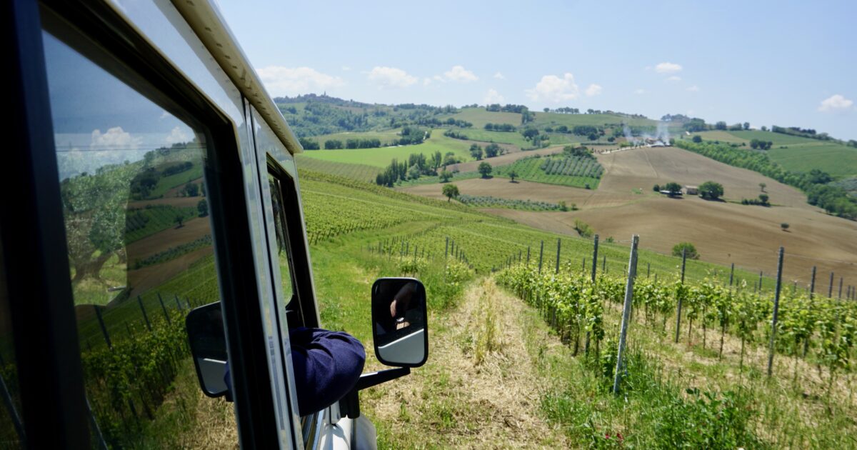 Land Rover tour tra i vigneti del Verdicchio. Degustazione vini nella country house Villa Bianchi e assaggio di una selezione di prodotti del territorio.