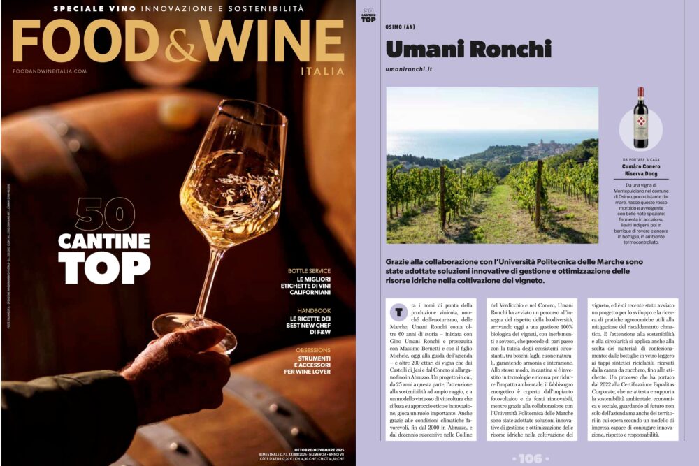 Umani Ronchi è tra le 50 cantine italiane più virtuose sotto il profilo dell'innovazione e della sostenibilità: il racconto corale di Food&Wine all'interno dello Speciale Vino 2025 mette in luce la diversità del vino italiano e la connessione profonda tra queste due dimensione alle quali guardano le aziende che lavorano con responsabilità e coraggio.